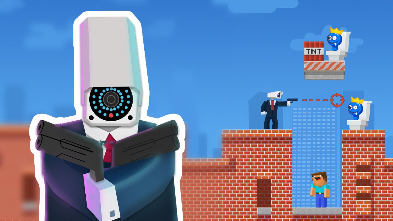 Cameraman vs Toilets Puzzle is an exciting game in which you play as Cameraman's Agent, whose task is to destroy all the toilets with the heads of rainbow friends. You have to use your shooting skills to accurately hit each toilet bowl and avoid hitting a Nubian friend.The goal of the game is to complete all levels.The goal of the level is to destroy all the toilets without killing yourself and the Nubian.Control - hold down the left mouse button / finger to aim; release the mouse button / finger to shoot. Destroy all the enemies by spending the minimum number of bullets.