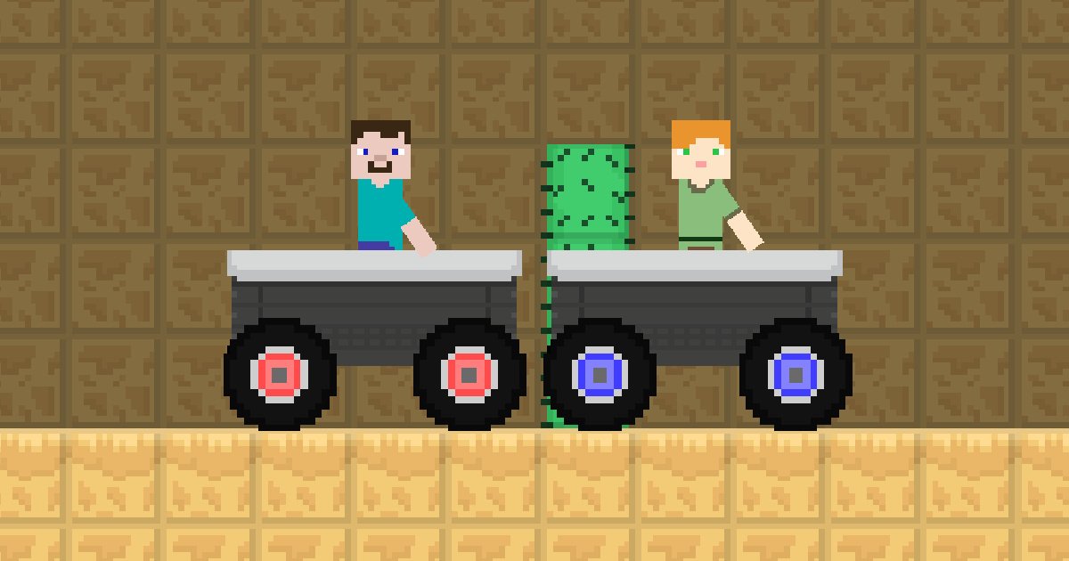 Steve and Alexs need to reach the finish line. The red and blue players have to reach the finish line. get the red and blue box, get the right to move to the new level, remember, you have to be very careful, you can crash every month. Play the game with 2 of your friends and reach the finish.